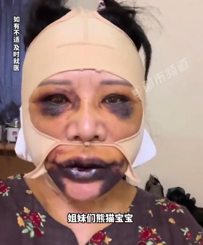 据河南广播电视台都市频道报道,上海一名58岁女子分享了自己整容10天后的面部情况。视频中,她面部仍有大片淤血,眼睛和嘴巴肿胀发紫。她自嘲像“熊猫”,并提醒大家追求美丽需谨慎,务必三思而后行。