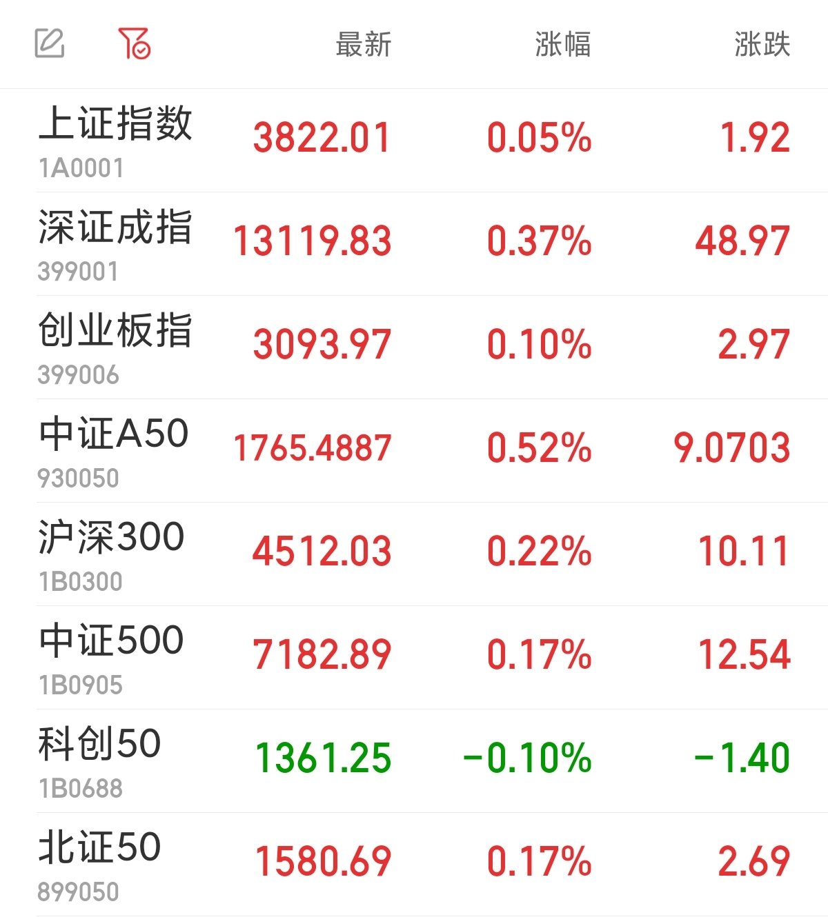 中新经纬9月22日电 周一,A股三大指数集体高开。上证指数涨0.05%,报3822.01点;深证成指涨0.37%,报13119.83点;创业板指涨0.10%,报3093.97点。