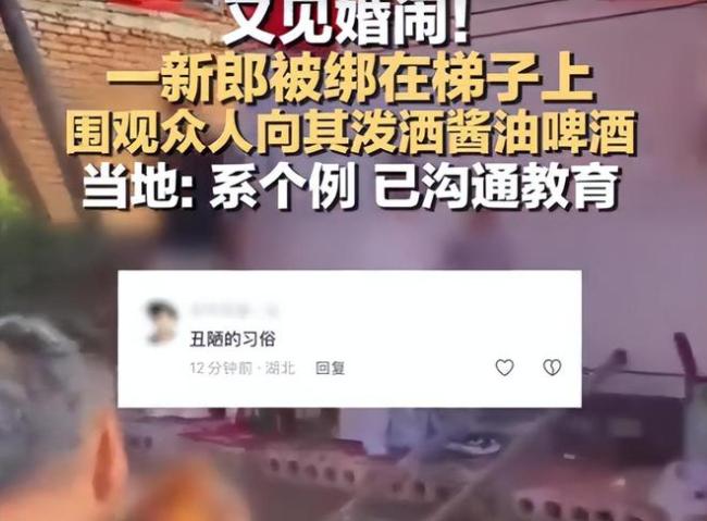 新郎被绑梯子上“婚闹” 当地:个例 低俗婚闹引争议