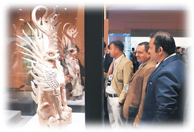 “敦煌莫高窟是丝绸之路上留下的多元文明荟萃的一座精神、文化、艺术丰碑,深刻彰显了中华文明开放包容的共存精神。”活动期间,敦煌研究院院长苏伯民阐释莫高窟的价值,中外嘉宾听得聚精会神。