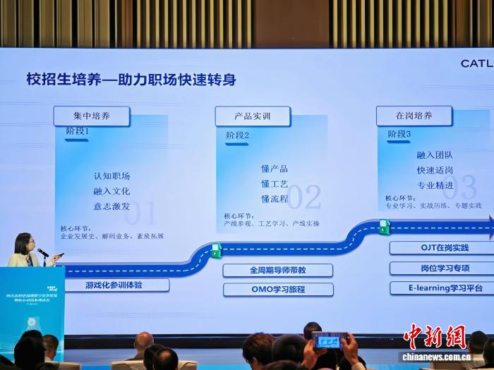 宁德时代新能源科技股份有限公司相关负责人介绍企业发展和人才需求。吴允杰 摄