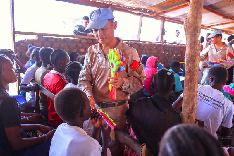 自部署至任务区以来,中国维和官兵在圆满完成各项维和任务的同时,始终心系当地民生,通过多种形式积极参与社区服务和人道主义援助,以真诚和友善赢得了联合国相关部门、驻在国政府及民众的高度评价,展现了中国人民热爱和平、负责任的大国担当与中国军队和平之师、正义之师、威武之师、胜利之师的良好形象。