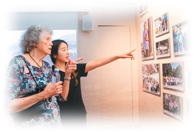 2024年6月22日,在“鼓岭·家族故事展示馆”,“鼓岭之友”成员、美国柯志仁家族后人毕乐华(左)在观看自己家族的历史资料照片。