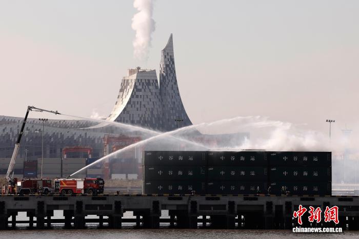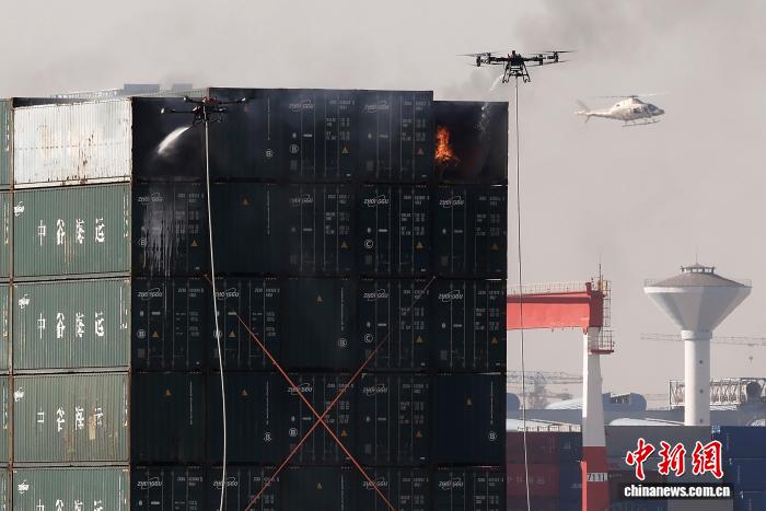 图为演练模拟上海市宝山区川念路28号的港区码头集装箱堆放区突然发生“燃爆”。中新社记者 殷立勤 摄