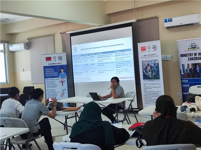 此次授课紧贴桑给巴尔当地医疗需求,聚焦宫颈癌防治的全过程。首日,韩利伟结合全球宫颈癌防治最新趋势及临床经验,对该领域前沿技术、综合治疗新路径进行了全面的讲解。次日,刘慧玲针对临床实操中的难点,重点分享了宫颈癌精准防控的典型案例、核心技能与关键流程,为当地医生提供了具像化、可借鉴的实践范本。