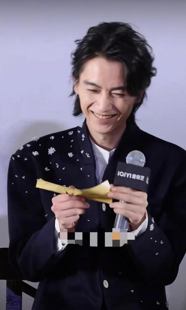 陈晓现在瘦得简直像换了个人。在《大生意人》的宣传现场,他穿着深蓝色西装显得空荡荡,178厘米的身高只剩下100斤体重,说话时要用手撑着膝盖喘气。狼尾长发衬得脸颊更加凹陷,看题板时需要佝偻着背往前凑,答题板上的字体从初号调到特大,他还要眯眼凑到十厘米处才能看清。主持人让他卖萌互动时,他皱眉抿嘴的表情被做成动图疯传,网友配文“被迫营业现场实录”。