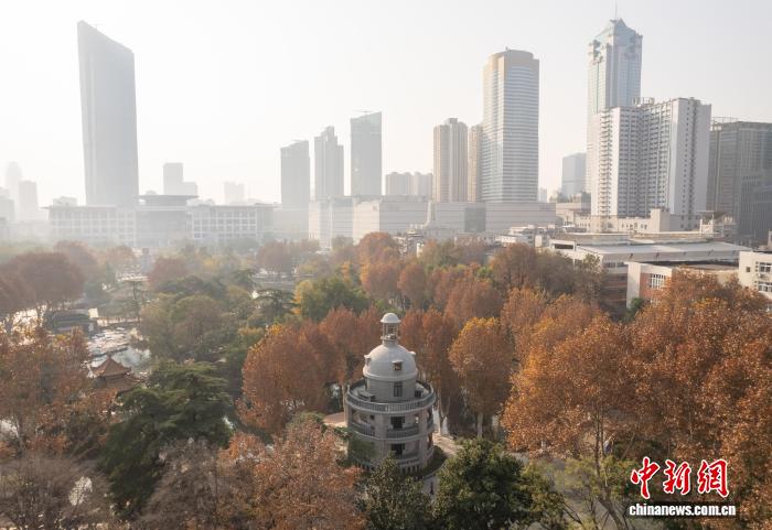 图为航拍隐于城市中的张公亭。(无人机图片)中新社记者 张畅 摄