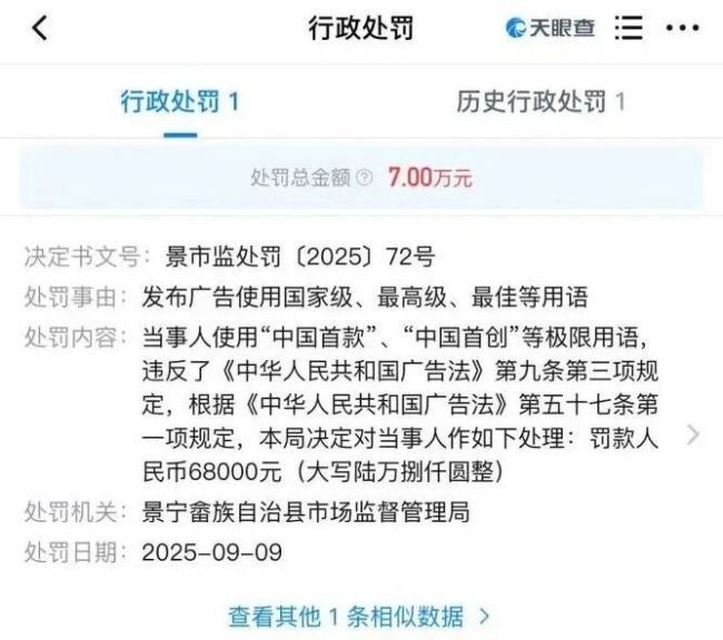 2025年3月份,江苏省东台市市场监管总局发布的质量抽查结果显示,徕芬吹风机因安全指标不达标被点名。除此之外,徕芬关联公司浙江徕芬贸易有限公司也分别于2024年12月、2025年9月因违反《中华人民共和国广告法》被景宁畲族自治县市场监督管理局分别作出罚款9.5万元、罚款6.8万元的行政处罚。