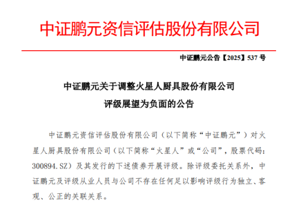 资本市场的寒意,还体现在评级机构的预警中。2025年11月12日,中证鹏元资信评估股份有限公司发布公告,将火星人主体信用等级维持为AA-,但将“火星转债”的评级展望调整为负面。中证鹏元强调,若公司持续亏损、经营活动现金流进一步净流出,将加大公司财务风险。