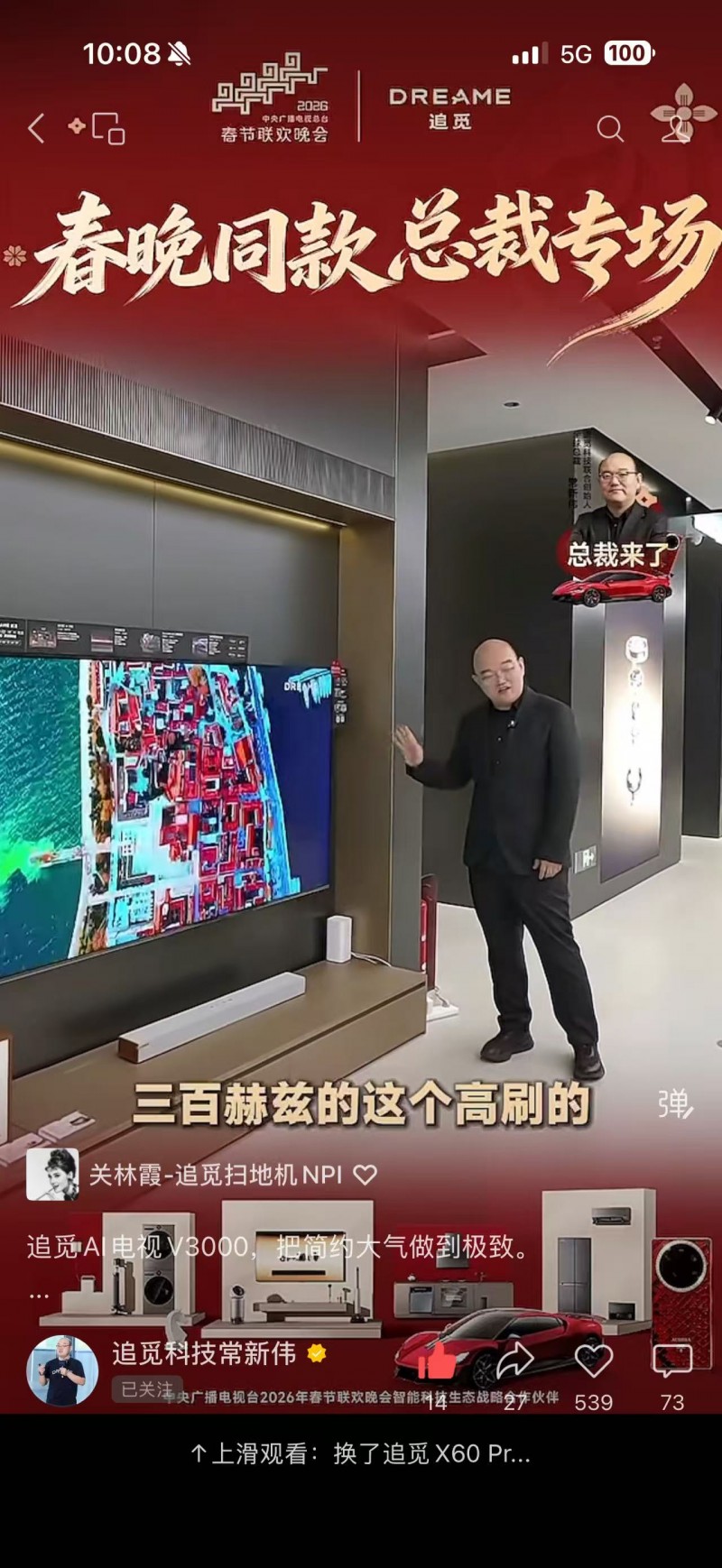 春晚同款的含金量多大?追觅AI电视霸榜春节会场第一,直播间挤爆
