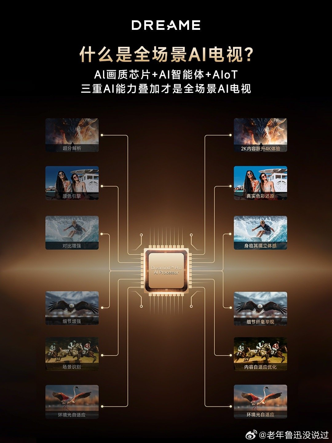 更惊艳的是它的画质,独家Dreamind Pro AI画质引擎能实时优化每一帧画面,搭配Aura Mini LED臻彩显示方案,春晚舞台上绚烂的灯光、演员服饰的细腻纹理,都被还原得淋漓尽致。2800nits的峰值亮度,让舞台亮部的璀璨不刺眼,暗部的细节不模糊,就连小品里演员细微的表情变化,都能清晰捕捉,一家人再也不用凑到屏幕前“找细节”了。