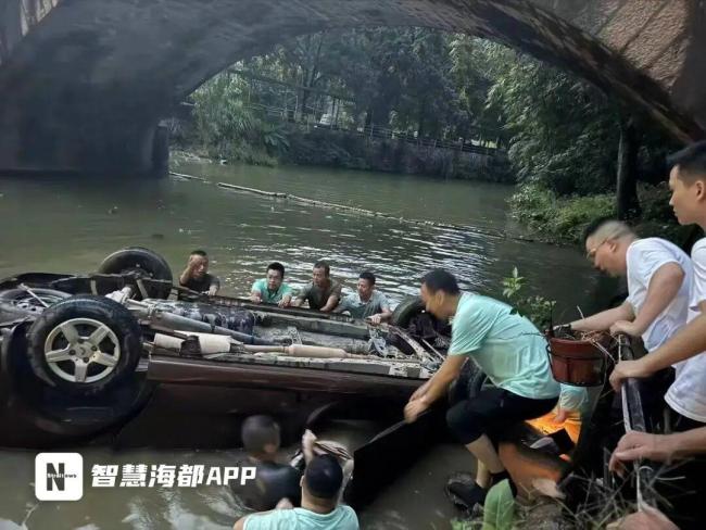 9月20日傍晚,福州闽侯旗山古溪里景区发生了一起意外。一辆小车失控从桥上冲入河中,四轮朝天,车上两人被困在齐胸深的水下。多位正准备晚餐的游客惊愕数秒钟后,跟着景区工作人员跳入河中翻转车辆,共用时5分钟,先后将两位被困人员拉上岸