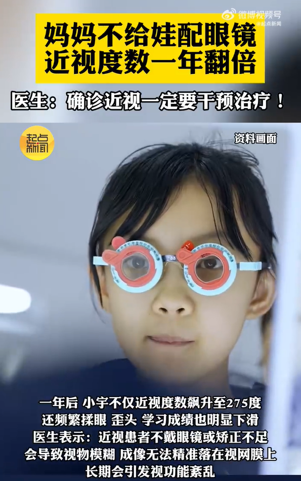妈妈不给娃配眼镜近视度数一年翻倍,医生提醒:确诊近视不矫正,等于放任恶化