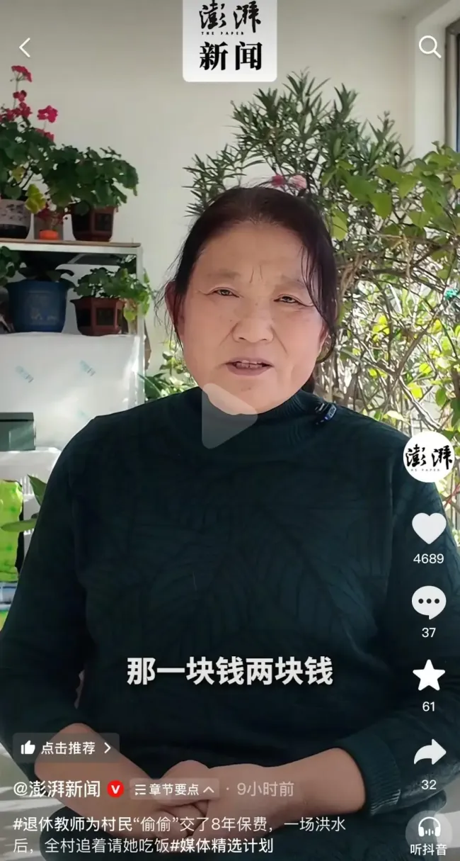 河北滦平马营子乡马营子村党支部书记张淑云,为村民默默交了8年农房保险的保费。今年洪水过后,村里受灾的73户家庭通过农房保险共获赔近百万元。今年7月26日,滦平县持续发布暴雨红色预警,马营子村按预案迅速组织群众转移