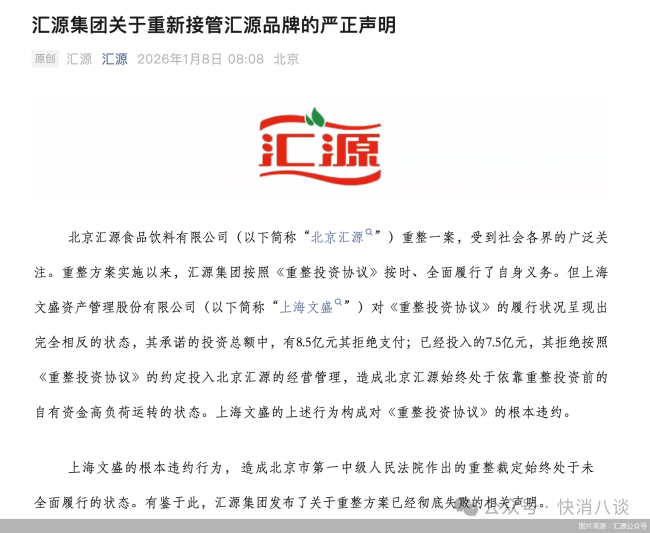 汇源控制权之争愈演愈烈。