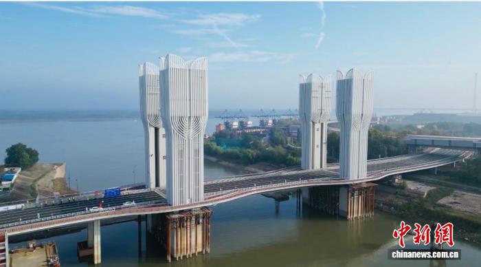 中新网武汉10月31日电 (卢琪 蒲凯伦 余思思)华中地区首座开启桥——武汉右岸大道开启桥10月31日进入试通车阶段。该桥提升长度、宽度、高度、重量均为同类型开启桥亚洲第一。