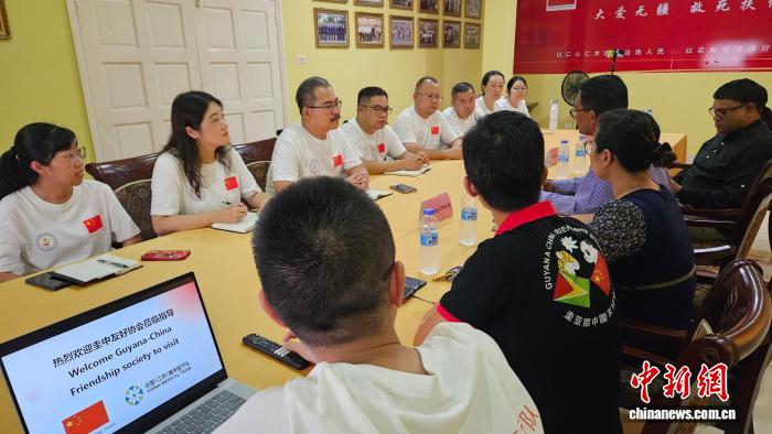 中新网圭亚那10月23日电 (李妍雨 彭森)圭中友好协会会长保罗(Paul)、圭亚那NCN电视台台长塞缪尔·苏克南丹(Samuel Sukhnandan)一行日前在圭亚那拜会第21批中国(江苏)援圭亚那医疗队并举行座谈,就未来一年的医疗协同