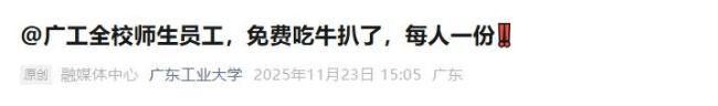 高校为了给学生提供更好的生活体验,纷纷推出了各种美食活动。广东工业大学因喜讯连连,决定请全校6万名师生吃牛扒。这不是该校第一次给学生加餐,2023年6月,学校篮球队在全国大学生篮球联赛总决赛中勇夺冠军时,也曾宴请全校师生吃鸡腿