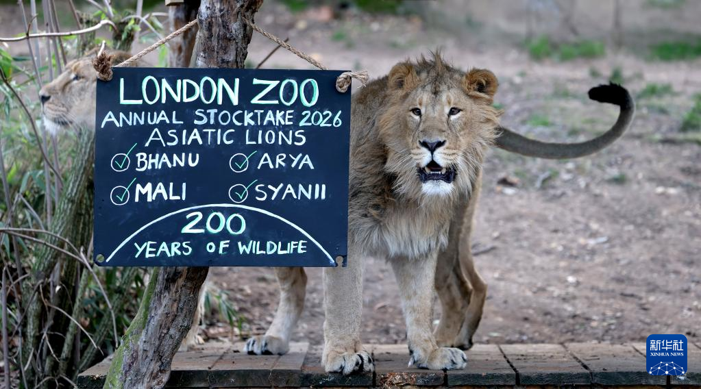 这是1月6日在英国伦敦动物园拍摄的狮子。 当日,英国伦敦动物园对园内饲养的动物进行一年一度的大盘点。 新华社记者李颖摄
