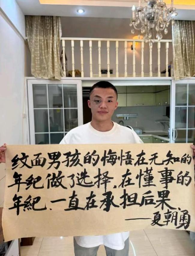 “在无知的年纪做了选择,在懂事的年代一直在承担后果”,这句话被夏朝勇写出来后,触动了不少人的心。如今他脸上的纹身已经洗了三次,额头、左脸和下巴基本看不出痕迹,只剩右眼周围还有点残留,再洗两次明年年中就能彻底清干净