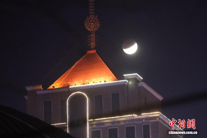 图为在西宁麒麟湾公园拍摄的月全食景观。中新社记者 张忠苹 摄 图为在西宁麒麟湾公园拍摄的月全食景观。中新社记者 张忠苹 摄