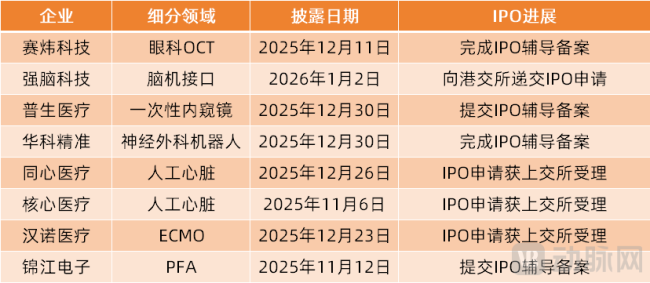 近期,动脉网发现:更多创新医疗器械细分赛道走到IPO阶段。